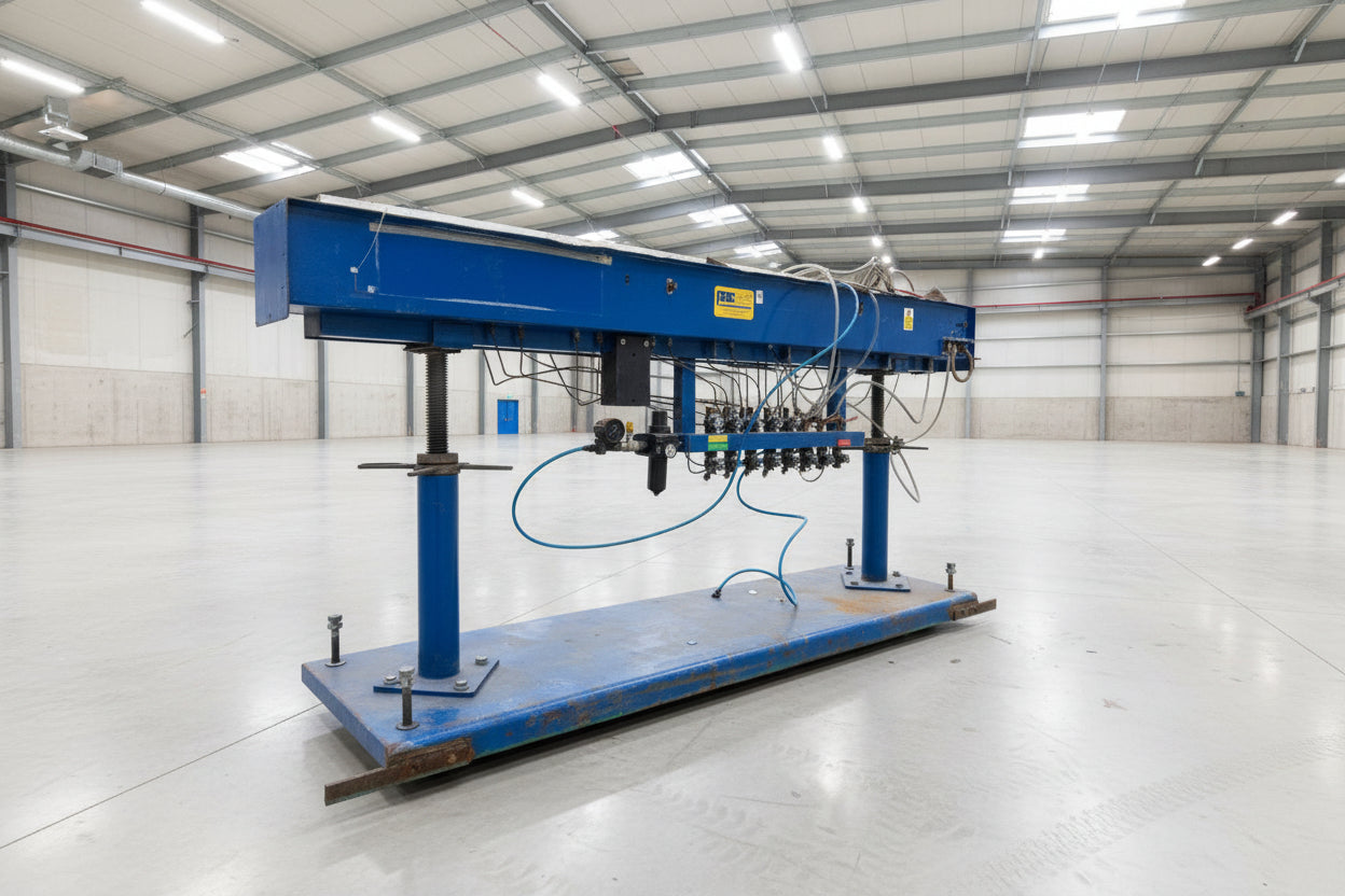 Constructed with a heavy-duty steel base and adjustable supports, the PAE Water Bath provides stable operation and easy height adjustment to accommodate various extrusion profiles and product sizes. Its stainless steel trough ensures long-term corrosion resistance, while the integrated water and air lines allow for consistent temperature control and smooth product handling throughout the cooling process.